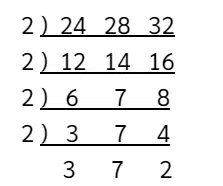 แนวคิด : ค.ร.น. หาโดยหารทั้ง 3 จำนวนด้วยจำนวนเฉพาะและไม่จำเป็นต้องหารได้ทุกตัว